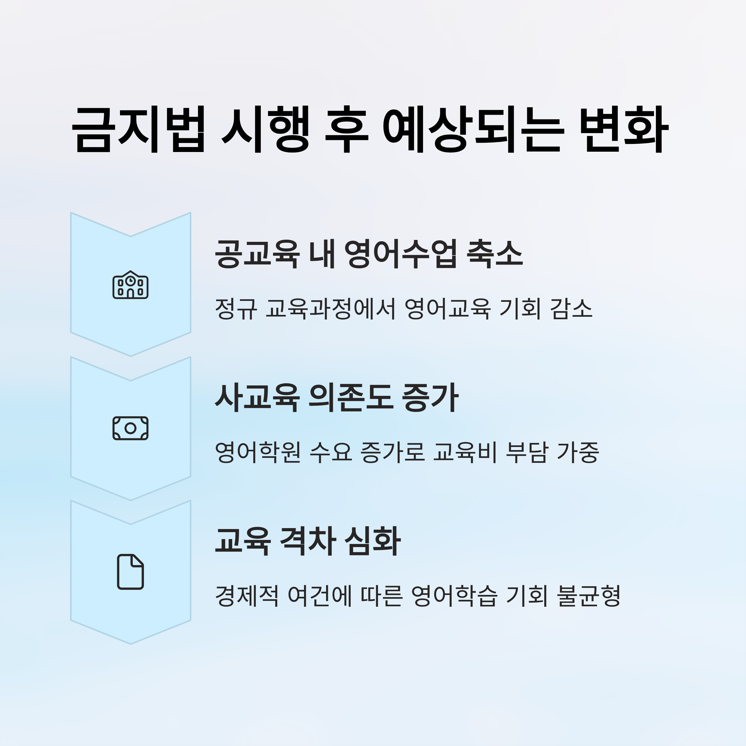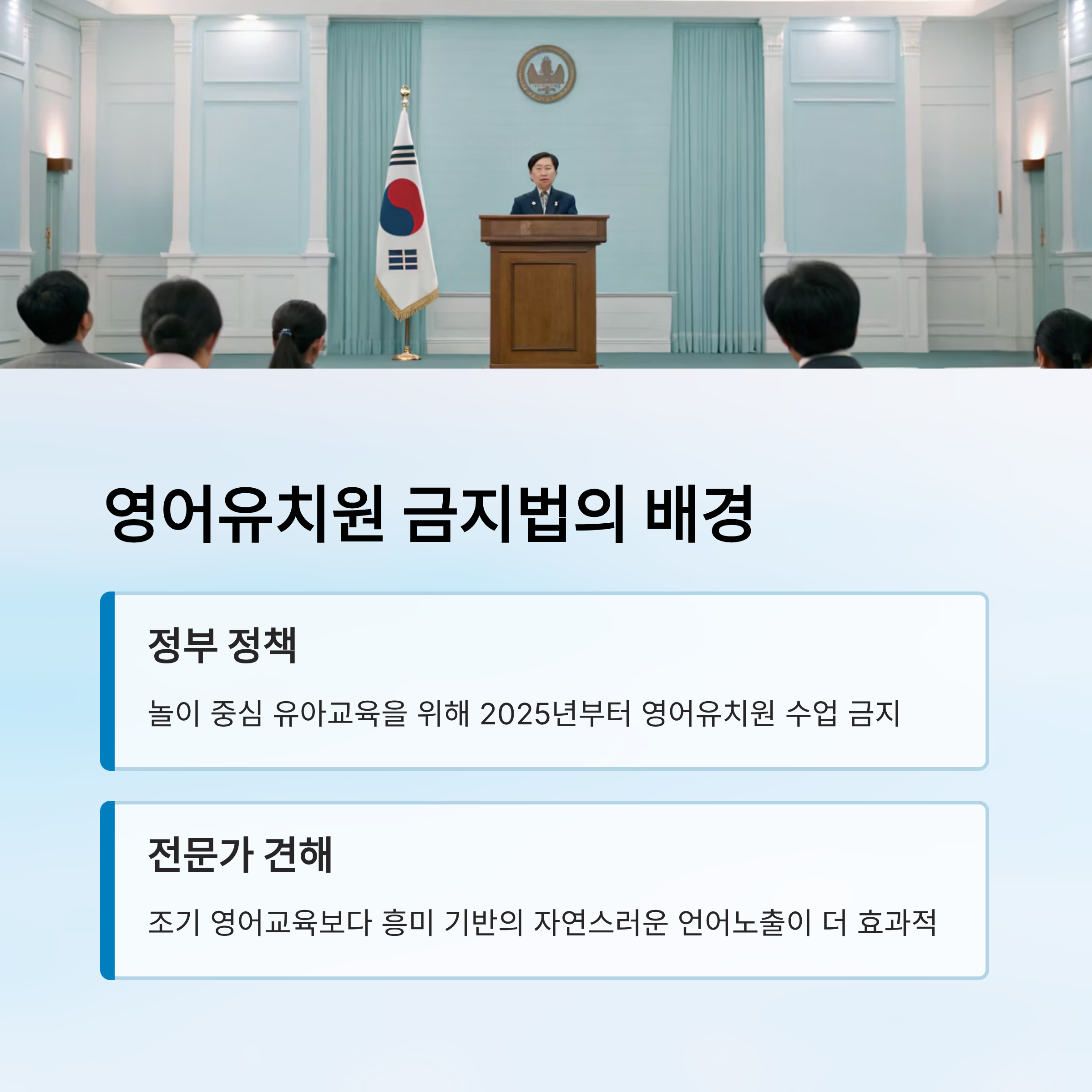 영어유치원 금지법은 공교육 내 조기 영어교육을 제한하는 정책으로, 사교육 시장에도 영향을 미칠 수 있습니다.